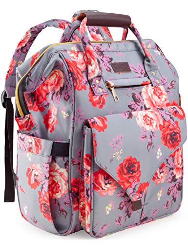 Kaome Diaper Bag Backpack, Upgraded Large Capacity Multifunction Nappy Bags, Waterproof Baby Bag Floral Insulated Durable Travel Maternity Back Pack for Baby Girls with Diaper Pad Bottle Bag (Floral)