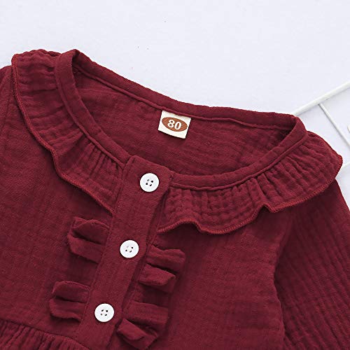 - Adorable Infant Girl Clothes---The long sleeve cotton linen shirt has ruffle trim on neckline and button decorated front, soft and cute toddler shirts, match good with floral pants too.