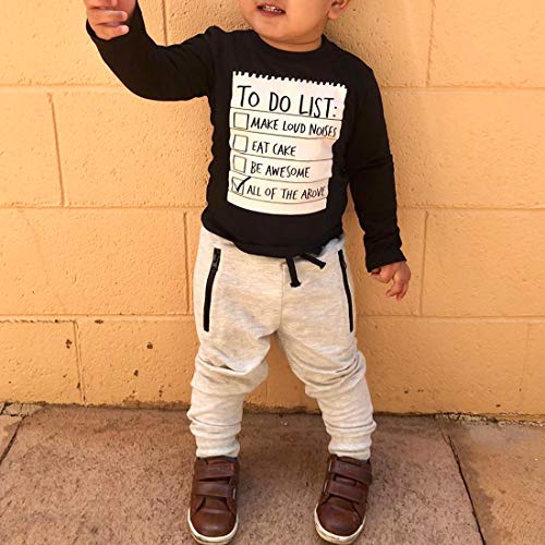 - Cotton fabric for these shorts sets is light weight, durable and good sweat absorption which fit for summer dressed. Short sleeve T-shirt with a " TO DO LIST " make kids looks more activities and trendy. Pants with a covered elastic waistband keeps kids for day-long comfort, great fit as playwear.