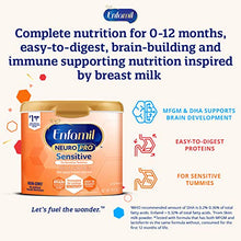 Details: Enfamil NeuroPro Sensitive is a gentle, easy to digest baby formula with low lactose, specifically designed for sensitive tummies and lactose sensitivity (Not for infants with galactosemia). It is the only gentle formula with the brain support benefits of NeuroPro, a fat-protein blend of MFGM and omega 3 DHA previously only found in breast milk. Enfamil is backed by decades of research on breast milk and multiple clinical studies on its brain support nutrition. Emerging evidence from a recent clinical study showed MFGM in infant formula supports cognitive development similar to breast milk.* It offers complete nutrition for babies through 12 months with easy to digest proteins, baby probiotics, and Vitamins C and E with Selenium for immune support. *As measured by Bayley-III cognitive score at 12 months in a different formula with MFGM added as an ingredient. **QuintilesIMS, using the ProVoice Survey fielded from Janurary 2017 to December 31, 2017. In amounts supported by clinical research. ‡Not made with genetically modified ingredients, but trace amounts of genetically engineered materials may be present in the product from manufacturing environments and process sources.
