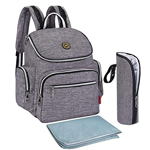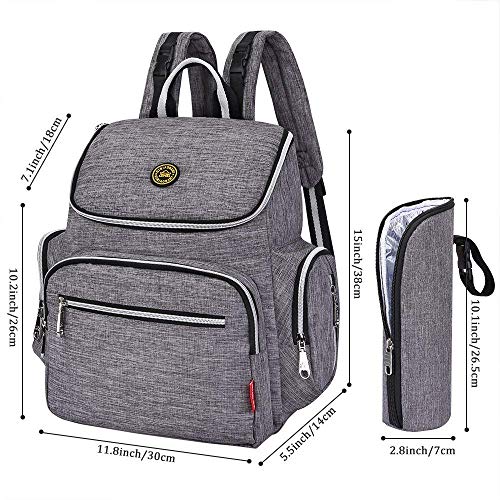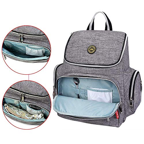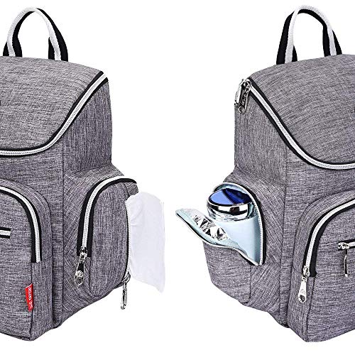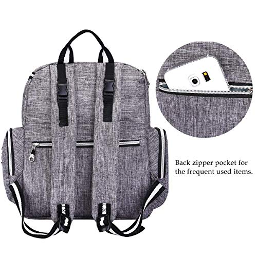 Qimiaobaby Multi-Function Baby Diaper Bag Backpack with Changing Pad and Portable Insulated Pocket (Grey)