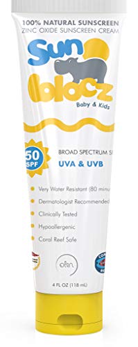 Sunblocz Zinc Oxide Sunscreen for Baby and Kids, SPF 50, Natural, Mineral Zinc Oxide Organic Sunblock, Broad Spectrum, Waterproof, Reef Safe