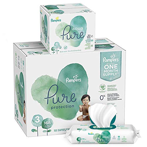Diapers Size 3, 168 Count and Baby Wipes - Pampers Pure Protection Diapers and Aqua Pure 6X Pop-Top Sensitive Water Baby Wipes, 336 Count