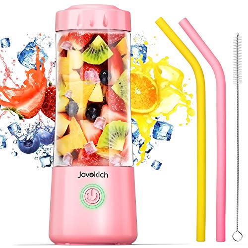 Portable Blender, Jovokich Personal Blender for Shakes and Smoothies, 14oz Juice Extractor Fruit Cup with 4000mAh USB Rechargeable Battery, Crushed Ice Maker Drink Mixer