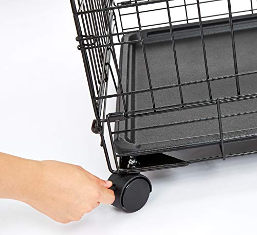 - Made of durable metal wire with a black rust-resistant E-coat finish; 4 wheels for easy maneuverability