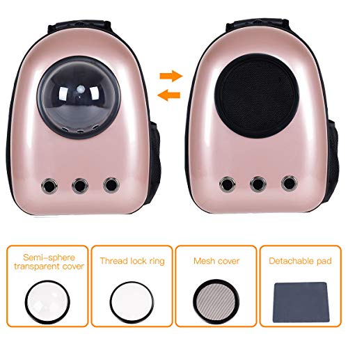 - 🐱【Semi-Sphere Design】: Semi-sphere design can well prevent them from escaping out and keep them safe in this breathable and cozy astronaut pet carrier totally under your care. There are 9 holes on the carrier. The transparent cover and plastic mesh can be taken off.
