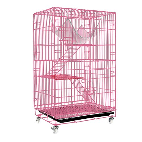 Details: Luxury 3-Tier Kitten Cat Ferret Cage Portable Cat Home Fold Pet Cat Cage Playpen Feature: [Spacious] The cage is ideal for 1 to 3 cats, also suitable for small pets like guinea pigs, ferrets, rabbits, etc. [Heavy duty construction] This 4-tier cat home comes with a finished metal mesh structure of high quality and measured spacing. [Quality accessories]Cat Playpen includes a hammocks and ladders , 2 adjustable cat resting platforms & 2 metal ladders & 4 locking wheel casters for easy positioning in your house. [Easy Access & Cleaning]Two large cabinet style front doors (top & bottom) w/ secure door latches provide easy access to your cat & maintenance of the cat's litter box and plastic tray slides-out for cleaning. [Compact Package Size] Cat cage is designed to fully fold down for convenient storage & portability when not in use. Description: Product Name: cat ferret cage. Product color: red color. Product weight: 28.89 pounds. Material: metal. Product size: 29.9 x 19.7 x 45.3 inches (76x50x115 cm) Packing size: 30.3 x 22.0 x 6.3 inches (77x56x16cm) The product has been rigorously tested, carrying a certain weight or placed for a period of time without deformation and bending. Package Included: 1Pc Cat Cage Playpen 1Pc Large Hammocks