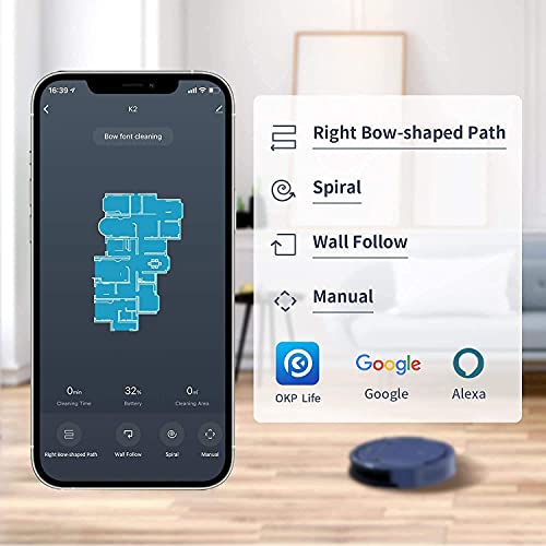 - 💡Smart App & Easy Control:You can easily create a home clean schedule, change the clean mode, and control the clean direction by using the OKP app. The auto vacuum cleaner robot is also compatible with Alexa and Google Assistant, allowing users make the robot start and stop the clean by voice commands. Use robots to save you time and energy!