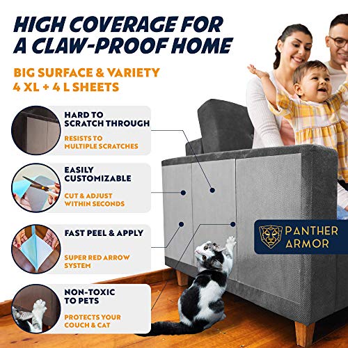 Panther Armor Cat Scratch Deterrent Tape – 8(Eight)-Pack – Double Sided Anti Cats Scratching Sticky Tape – 4-Pack XL 16”L 12”W + 4-Pack Large 17”L 10”W Furniture Protectors – Clear Training Tape