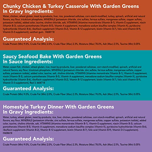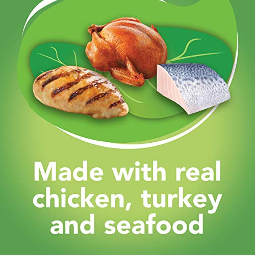 Details: There's no need to worry about muddy paw prints when you bring the tastes of the great outdoors inside with this Purina Friskies Indoor wet cat food variety pack. Each pack contains three tempting recipes loaded with cat worthy taste, giving you a convenient way to add a sense of adventure to your cat's diet. These entrees are made with real poultry or seafood to deliver crave a licious flavor. The moist, tender texture of these perfectly delicious recipes gives her something delectable to sink her teeth into, while the enticing aroma keeps her coming back for more at mealtime. Watch as she licks her whiskers in anticipation every time she sees you filling her dish with one of these canned wet cat food entrees, and make mealtime fun by sharing her excitement as she discovers which yummy variety you serve up each day.
