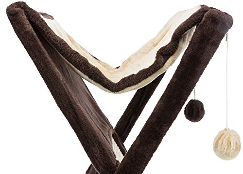 Details: Trixie's miguel cat scratching tower's unique design is ideal for small spaces. Simply fold it up for quick and easy storage. While in use, it will provide endless opportunities for cats to play, explore, scratch or just relax. Felines can sharpen their claws on the durable sisal scratching surface instead of on your furniture or carpet, giving them a healthy outlet for their scratching instincts. Spunky cats can jump, climb or perch in the plush hammock and lie in wait for unsuspecting prey or just relax and enjoy the view. for a cozy retreat, they can crawl inside the soft sided condo with a plush insert. The neutral browns make this piece of cat furniture easy to integrate into your home décor. Suitable for cats of all ages and activity levels. One year warranty. Color brown and beige. Dimensions 21 by 14 by 26-Inch. Weight 11-pound
