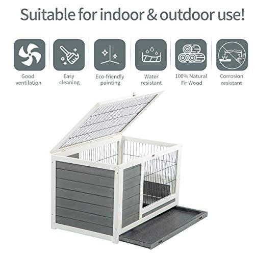 - 【Durable & Weatherproof】 Constructed by natural fir wood and painted with eco-friendly waterproof non-toxic varnish. The original wood is firm and natural for your beloved pet. Easy to assemble with pre-drilled holes and fit well into indoor and no rain outdoor use.