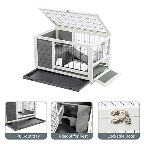 - 【Removable Tray】Rabbit hutch with a DEEPPER removable pull out tray is for easy cleaning. Unlike cheap plywood/metal tray, plastic trays will never leak or go mouldy.