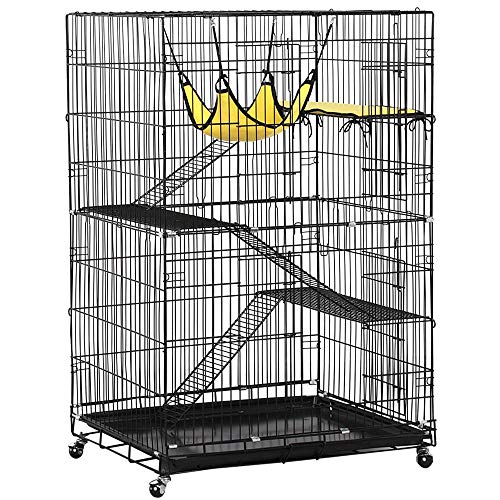 YAHEETECH Collapsible Large 3-Tier Metal Wire Pet Cat Kitten Ferret Chinchilla Cage Playpen Crate Enclosure Kennel Cat Home on Wheels Indoor Outdoor 3X Ramp Ladders/1x Hammock