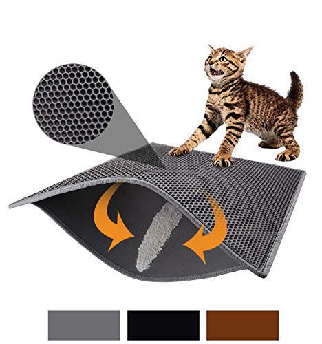 Pieviev Cat Litter Mat Double Layer Waterproof Urine Proof Trapping Mat (30''X24'', Grey)