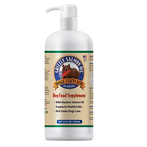 Grizzly All-Natural Wild Caught Alaskan Salmon Oil Dog Food Supplement | Balanced Blend of Omega-3 Fatty Acids | Medical Grade Pump for Exact, No-Spill Dose (32 oz)