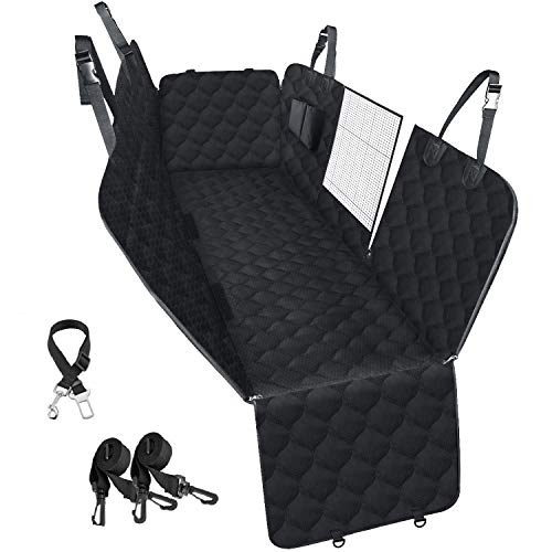 PETICON Car Seat Cover for Dogs, 100% Waterproof Dog Seat Cover for Back Seat with Mesh Window, Scratchproof Dog Car Hammock for Cars, Trucks, SUVs, Jeep, Nonslip Back Seat Protection