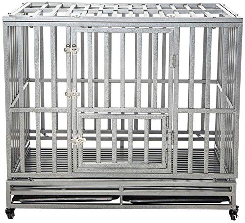 Polar Aurora Pet Dog Cage Heavy Duty Strong Metal Crate Kennel Playpen w/Lockable 4 Wheels&Tray (42, Grey)