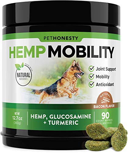 PetHonesty Hemp Hip & Joint Supplement for Dogs w/Hemp Oil & Hemp Powder - Glucosamine Chondroitin for Dogs w/Turmeric, MSM, Green Lipped Mussel, Dog Treats Improve Mobility,Reduces Discomfort - Bacon