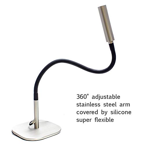 Details: Essential Minimalist - Clean lines shape, made to last both functionally and aesthetically. Equipped with an silicone covered stainless steel adjustable arm, smooth swiveling lamp head, convenient light head touch dimmer switch and a solid full metal slim base for stability.