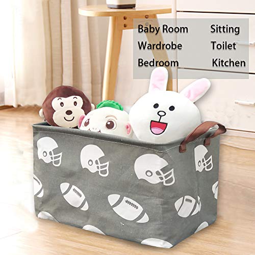 BOOHIT Rectangular Storage Basket,Nursery Hamper Canvas Fabric Toy Storage Organizer Bin,Waterproof Storage Box,Laundry Basket for Kid Rooms,Playroom,Shelves,Toy Basket,Gift Basket(Football)