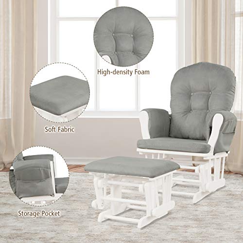- Soft & Removable Chair Cushion: Filled with high-quality sponge, this rocking chair and ottoman set has good elasticity and is not easily deformed. The surface with soft microfiber fabric provide you with a comfortable relaxing time. Besides, the cushion of the glider can be detached, which is convenient to maintain daily.