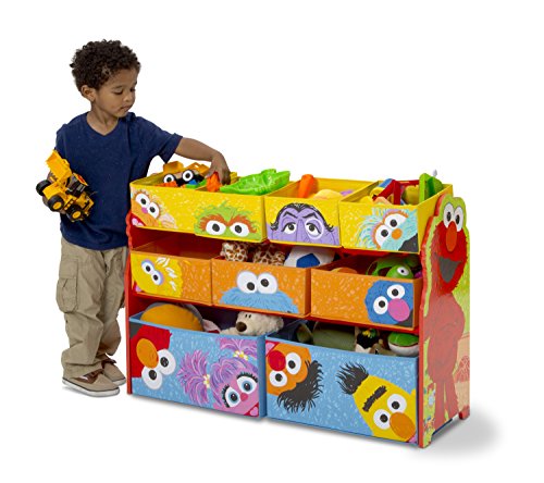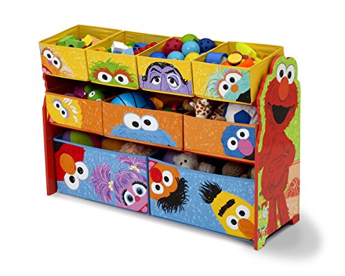 Details: Can you tell me how to get. The kids to clean their room? With this Sesame Street Deluxe Multi-Bin Organizer, of course. Supported by sturdy wooden frame, it features nine fabric bins and colorful images of the whole Sesame Street gang. A fun option for easy organization of toys large and small, it encourages kids to clean up in record time.