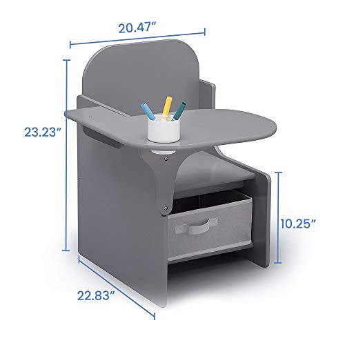 Details: The MySize Chair Desk With Storage Bin from Delta Children is a smart and sturdy seating option for your young scholar. Perfectly sized, this durably constructed chair and desk combo works for them and their space with its large work surface and low height that makes it easy for preschool kids and toddlers to get in and out on their own. A removable cup holder for art supplies and storage area underneath with a coordinating fabric bin keeps everything your child needs within reach. The MySize Chair Desk With Storage Bin from Delta Children is ideal for drawing, painting, writing or eating, and will look great in any room of your house. Available in a number of beautiful colors: Grey, Bianca White or Dark Chocolate. This Chair Desk with Storage Bin coordinates with other items in the MySize Collection from Delta Children. Delta Children was founded around the idea of making safe, high-quality children's furniture affordable for all families. They know there's nothing more important than safety when it comes to your child's space. That's why all Delta Children products are built with long-lasting materials to ensure they stand up to years of jumping and playing. Plus, they are rigorously tested to meet or exceed all industry safety standards.