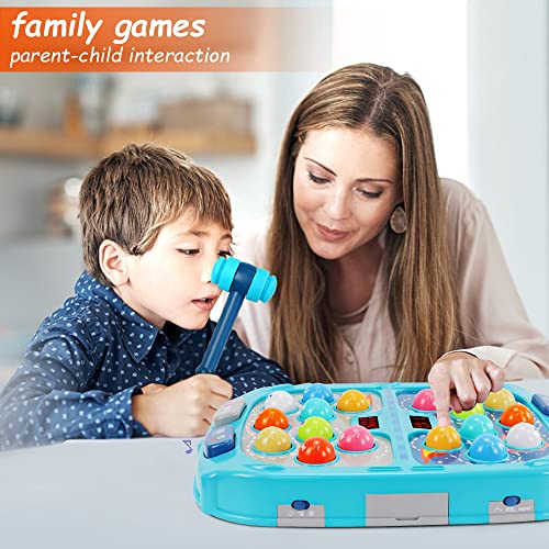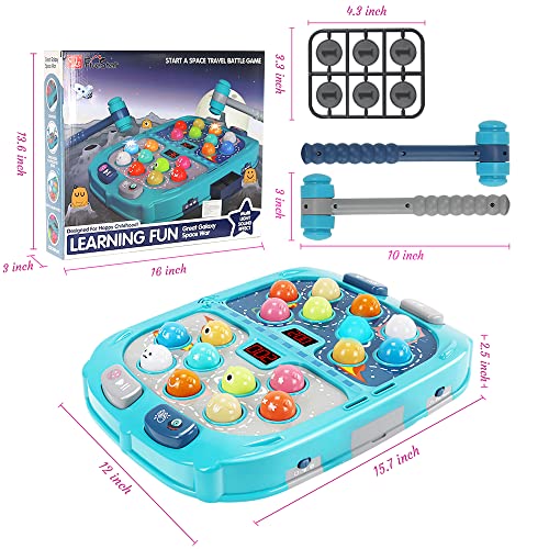 - 💖💖【New Upgrade from “Frog Model” - EXTRALARGE】 This "Pound A Mole" toy is an upgraded version of "frog model" . This thing is way bigger(12” x 16”), and has more target balls (18, not just 10), 2 mallets, and 2 score displays, 3 game modes, 9 speeds, 8 languages(for voice prompt). Fun for solo or multi-player competition, for kids and grown-ups too, to sharpen hand-eye coordination, motor skill and to enhance parent-child interaction.