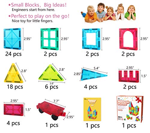 - 【Educational STEM toys】: LEARNING BY PLAYING. By playing this magnetic building tiles, children can acquire strong sense of color, geometrical shapes including 3D forms numbers counts, magnetic polarities & architectural design at early age. Perfect educational presents for kids boys girls 3 4 5 6 7 8 9 10 11 12 years old and