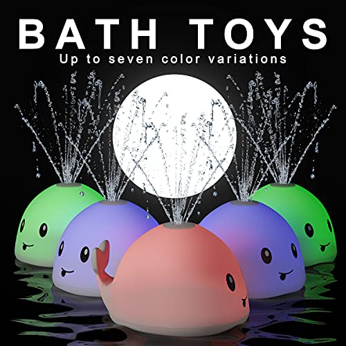 - 🛁 Designed for baby bathing - this light up bath toys can emit colorful lights and the shape of a cute whale design is also very popular with children. cute cartoon whale toy, floating toy with water spray and color flash. Put on the bathtub, will naturally cause the baby's attention. With water spray toys, the baby will be very happy every time and enjoy their bath time. Toys are suitable for children of all ages.