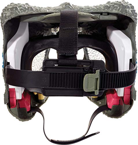 Details: Get ready for thrilling action and adventure with Jurassic World! Based on the fan favorite movie character, Velociraptor Blue, this Chomp 'N Roar Mask features realistic details like skin texture and color, teeth and eyes that move inward to focus on prey! When the electronic mask's jaw opens to varying degrees, there are three levels of sound effects that really make the mask ROAR into action. A secure strap ensures a comfortable fit as well as eye and nose openings for visibility. Pair with the Velociraptor Blue Claws (sold separately) for compete dinosaur role-play fun! Colors and decorations may vary.