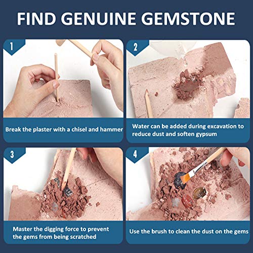 - A REAL GEOLOGY ADVENTURE FOR KIDS: Our gemstones dig kit creates an environment for children to simulate a real miner digging up authentic gems buried in the dig brick, discover real gems and display them! Our bundled science cards will help young scientists identify each specimen as it’s discovered