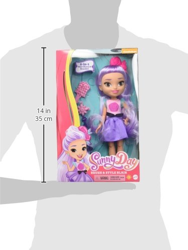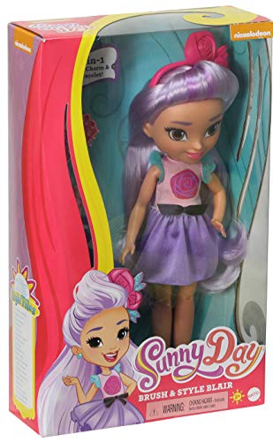 Details: Product Description It’s a Sunny Day, every day with Brush & Style dolls and hair accessories inspired by the television series, Sunny Day! Blair is a creative manicurist and pedicurist, as well as the salon manager who always keeps fun on the schedule! Kids can style the Blair doll's hair with her clip-in hair charm or wear it as a bracelet, and then mix and match with her best friends, Sunny and Rox! Blair measures approximately 11 in (27 cm) tall. (Brush & Style Sunny and Rox dolls are sold separately and subject to availability.) Brand Story Sunny is a talented 10-year-old and the best hairstylist in Friendly Falls who runs her own salon and empowers her friends (and preschoolers) to find the confidence they need to be the best they can be! By embracing Sunny’s creativity, innovation and fearless self-expression through hairstyling, Mattel has designed products that encourage kids to find their own personal style and bring it to life through unique looks and open-ended play. Whether they use Sunny Day toys and playsets to act out real-life scenarios or create worlds of their own, kids will learn to untangle problems and express themselves in new and exciting ways!