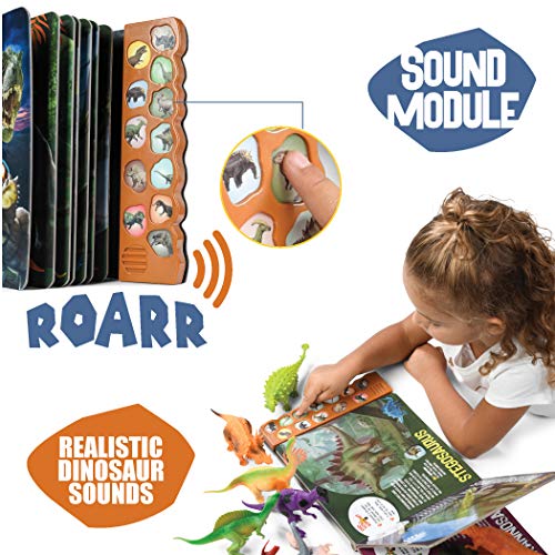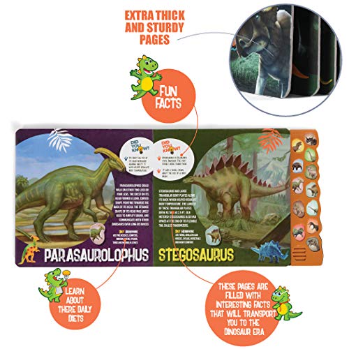 - FUN AND EDUCATIONAL - This interactive sound book is fun to play with, while providing knowledge and fun facts about these prehistoric beasts. Each page has fun facts and a little piece of history about each dinosaur.