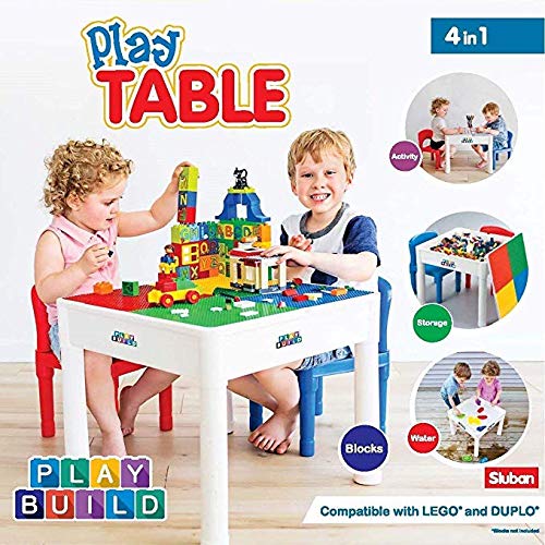 - MEGA 4-IN-1 BUILD & PLAY TABLE Ultimate Boys & Girls Activity Center Includes Toddler Height Table, 2 Chairs & Built-In Storage for Easy Indoor & Outdoor Play