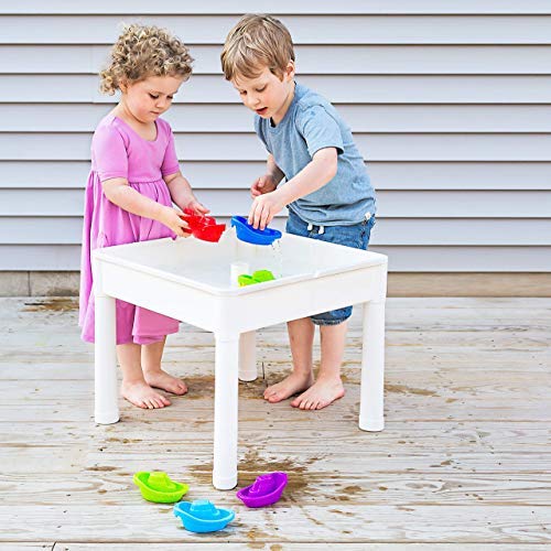 Details: Bring something new to the (play) table! Curious toddlers move at a mile a minute, switching from building blocks to coloring books to action figures in a flash. Encourage education and keep the house clean with this flexible 4-in-1 LEGO table from toys 4 U. Our kiddie-sized play station easily converts from a Lego table with brick boards to a quaint study spot where they can draw and paint at a comfortable height. Thanks to its durable build, the set stands up to constant play both indoors and outside, making it perfect for the playground, backyard birthday parties, daycare and more. Wondering where to keep all those messy building blocks? Remove the top cover and enjoy ample space where kids can store their bricks and other supplies. The airtight compartment also doubles as a shallow tank; fill it up with water, and watch kids exercise their imaginations as they splash and play outdoors. Two sturdy chairs in red and blue finish off the set for a fantastic piece of playroom décor. So stop stressing over the toy box explosion—and bring home the 4-in-1 LEGO table today! What you get 1 x 4-in-1 LEGO table from toys 4 u 2 x toddler height chairs in red and blue> A versatile play space for inside and outside LEGO-Compatible plates so they can easily build! Specs & Details table color: White> chair color: (1) red & (1) Blue> Material: BPA-free plastic total pieces for assembly: 10 indoor & outdoor safe recommended for ages 2 and up How to enjoy follow the simple instructions for fast assembly> show Kids how to connect bricks to the baseplate> see them build, learn, experiment and create> free up your bins and drawers by storing toys inside> keep tots comfortable and entertained for hours