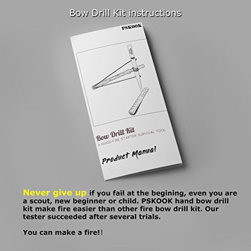 - Never give up if you fail at the beginning, even you are a scout, new beginner or child. PSKOOK hand bow drill kit makes fire easier than other fire bow drill kit. Our tester succeeded after several trials. You can make a fire!