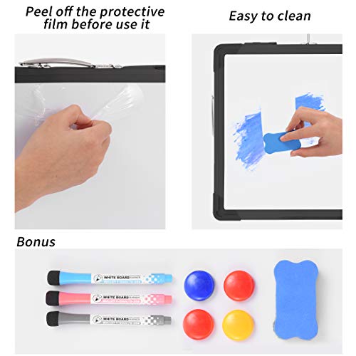Small White Board Dry Erase Board - 12" x 16" Double Sided Desktop Foldable Magnetic Whiteboard with Markers and Magnets Personal Easel for Kids Drawing Home and Office (Black)