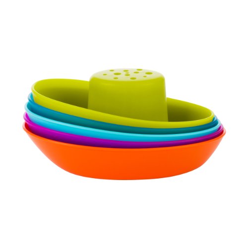 Boon FLEET Toddler Bath Tub Water Stacking Boat Toy Set for Kids Aged 9 Months and Up, Multicolor (Pack of 5)