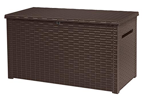 KETER Java XXL 230 Gallon Resin Rattan Look Large Outdoor Storage Deck Box for Patio Furniture Cushions, Pool Toys, and Garden Tools, Espresso Brown