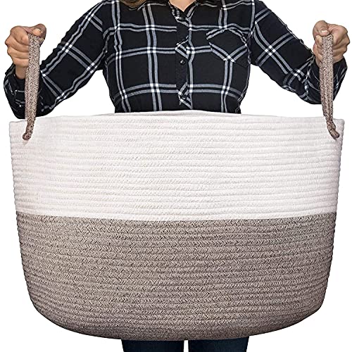 XXL Extra Large Cotton Rope Basket with Exclusive Laundry Bag: Wide Storage Organizer for Living Room, Blankets, Sofa Throws, Nursery, Baby Kids Toys, Playroom: 20" x 14" Hand Woven Hamper (Grey)