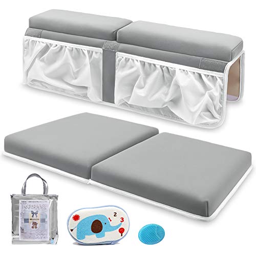 Bath Kneeler and Elbow Rest Set Baby Bath Kneeling Pad, Thick Non-Slip Bathing Kneeling Mat Cushion Quick Drying Bathtub Knee Mat with Arm Support and Pockets for Bathroom Bathing Comfort, Gray