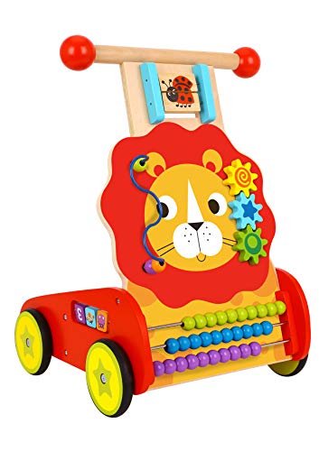 Pidoko Kids Lion Baby Walker Cart with Wheels - Wooden Activity Center Push and Pull Toy - for 1 Year Old and Up