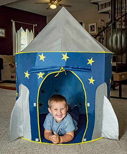 no branded Rocket Ship Tent - Space Themed Pretend Play Tent - Space Play House - Spaceship Tent for Kids - Foldable Pop Up Star Play Tent Blue