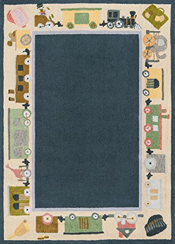 Momeni Rugs Lil' Mo Classic Collection, Kids Themed 100% Cotton Hand Hooked Area Rug, 5' x 7', Blue
