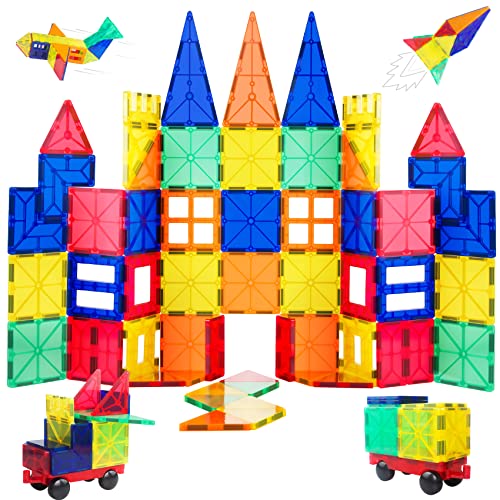 Magnetic Tiles, 60 PCS Magnetic Blocks Building Blocks for Kids, Magnet Toys for Boys Girls Toddlers Children 3 4 5 6 7 8 Year Old Educational Learning Toys Building Tiles with Car