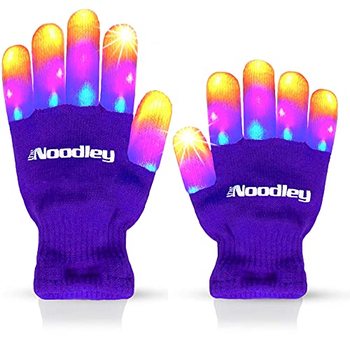 The Noodley Purple Small Toy Light Up Children LED Gloves Girls and Boys Funky Flashing Orange, Pink, and Blue - Kid Sized Ages 4,5,6,7 Year olds (Small, Purple)