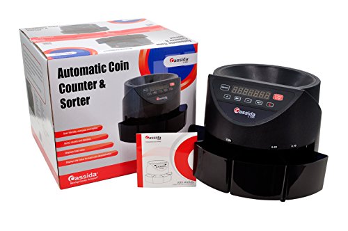 Details: A convenient and affordable coin counter, the Cassida C100 is the lowest cost business-grade coin counter/sorter from America's #1 Manufacturer in Cash Handling. The medium-duty C100 counts the main four US Coins: Pennies, Nickels, Dimes, and Quarters. The Cassida C100 has a counting speed of 250 coins per minute, and the hopper holds 900 dimes. All Cassida products come standard with a 1-year parts and service executed by our Portland Oregon service team. The Cassida C100 also comes standard with a 30 day defective policy: If there are manufacturer defects with the C100 within 30 days of purchase, Cassida will ship a replacement at zero cost to you, and a prepaid label will be provided to you to return. Buy with confidence, buy Cassida.