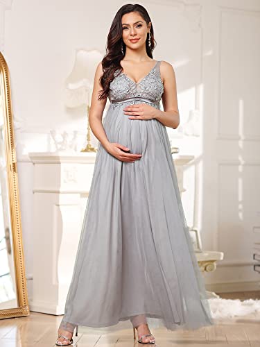 - This tulle maternity maxi party dress features illusion fabri, lacce appliques, v-neck and soft fabric.